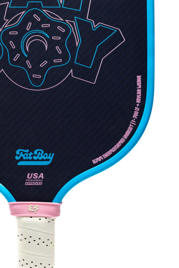 Introducing the all-new "Fat Boy" paddle. With its wide-body design and super-sized sweet spot, this paddle is a game-changer. Crafted with an Aramid and Carbon Fiber face, it delivers exceptional spin and pop. Finally, a control paddle that lacks self-control!