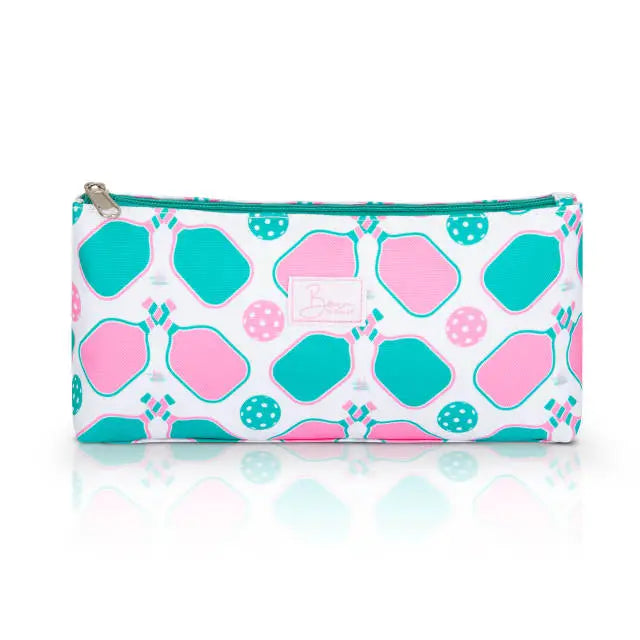 Elevate Your Organization with Our Pickleball Cosmetic Bag! Experience the perfect blend of style and functionality with our Pickleball Cosmetic Bag. This thoughtfully designed bag offers ample space for your cosmetic essentials and pickleball accessories, making it an essential companion for both the court and your daily routine. Crafted from high-quality materials, this bag is built to last while exuding elegance. Its colorful paddle design adds a touch of sophistication to your pickleball game and daily life. Order now and enjoy the ultimate in organization and style!
