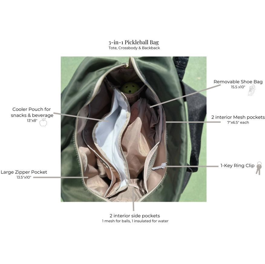 Pickleball Bag – 3-in-1 Tote, Crossbody, Backpack