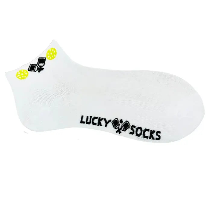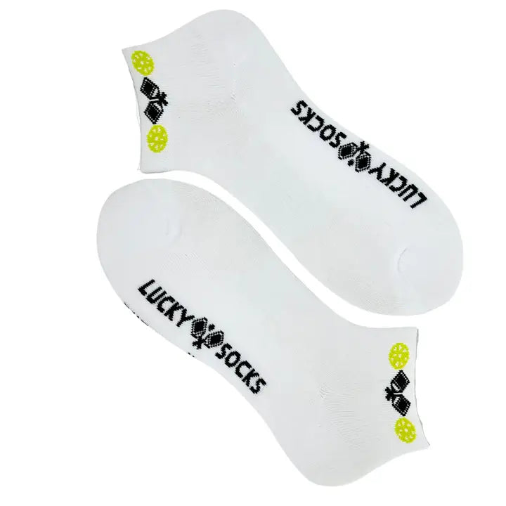 Unleash your inner lucky charm on the court with our Women's Pickleball Lucky Socks. These socks are designed to bring a touch of fun and positivity to your game. With vibrant colors and playful Pickleball pattern, they are the perfect way to express your personality while showcasing your love for the sport. Made from high-quality materials, these socks offer superior comfort and durability. Whether you believe in lucky socks or simply want to add some flair to your game, our Women's Pickleball Lucky Socks are a must-have accessory. Step onto the court with confidence and style. Order your pair today and let the good vibes flow! Materials:Â 80% Cotton+17% Nylon+3% Spandex Size: Women US 7-10