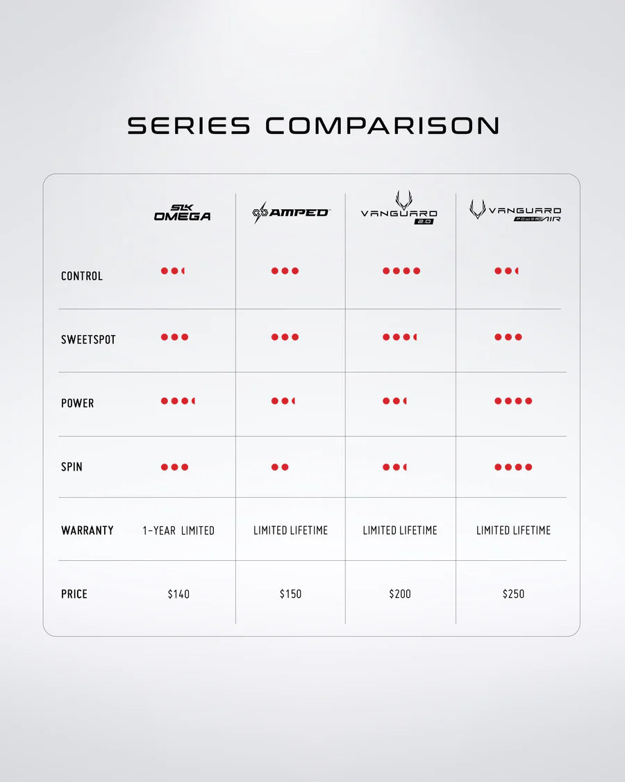 A culmination of over two years of Research & Development, in partnership with top Pickleball pros, the VANGUARD Power Air addresses the need for both power and spin.